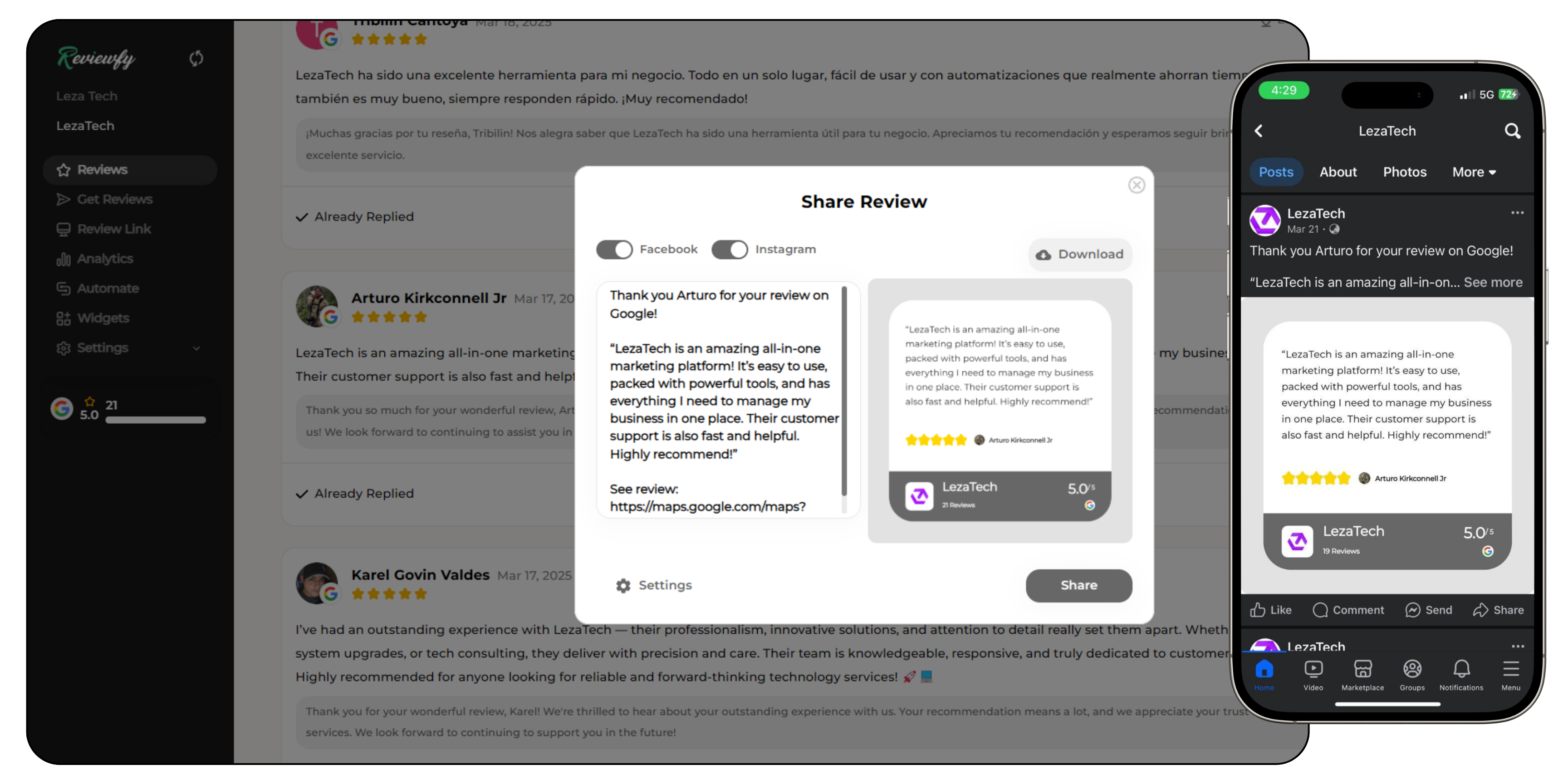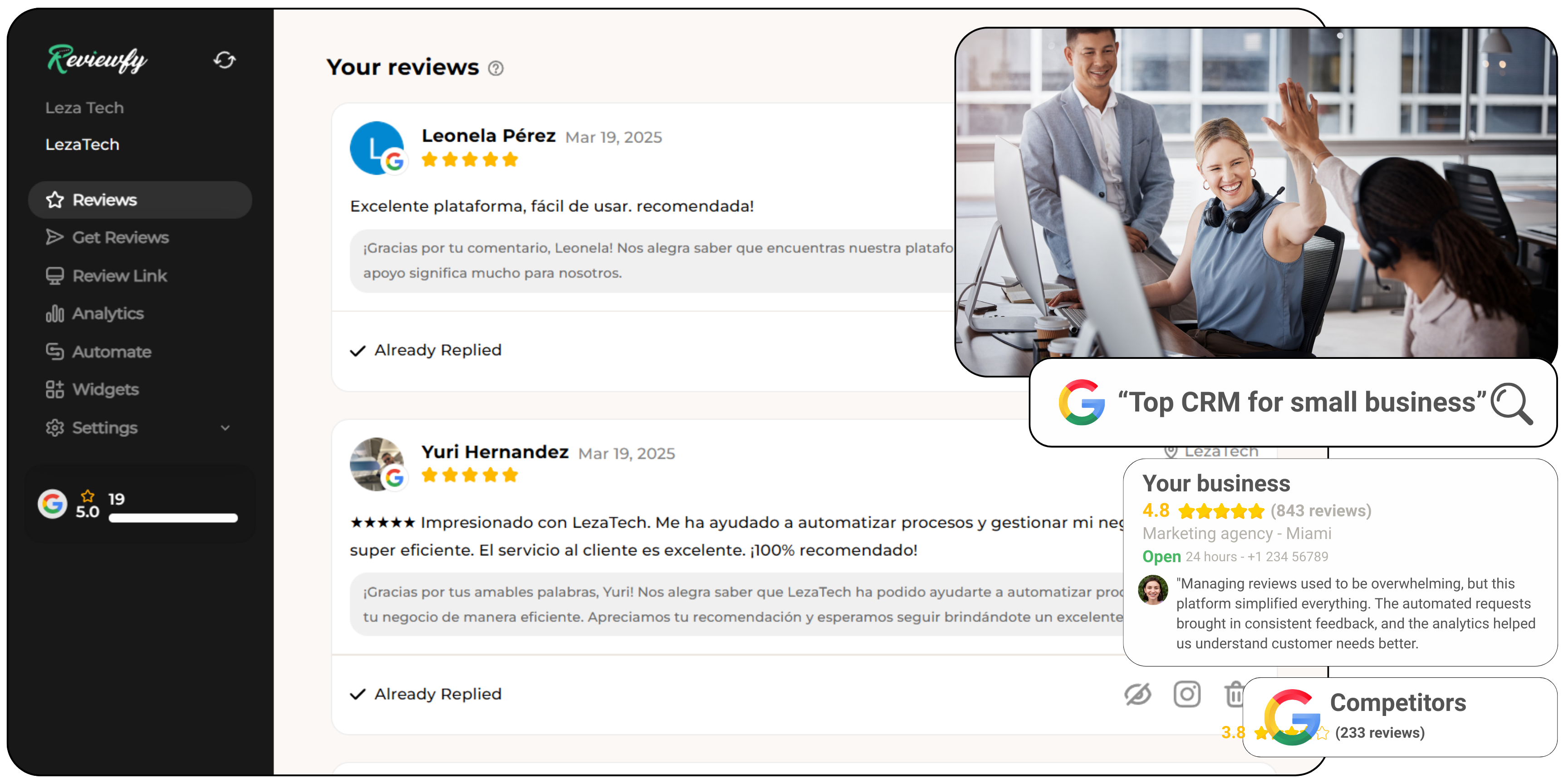 Our system allows you to monitor reviews from multiple platforms in one central dashboard. You’ll receive real-time updates on all customer feedback, making it easy to manage and respond quickly.